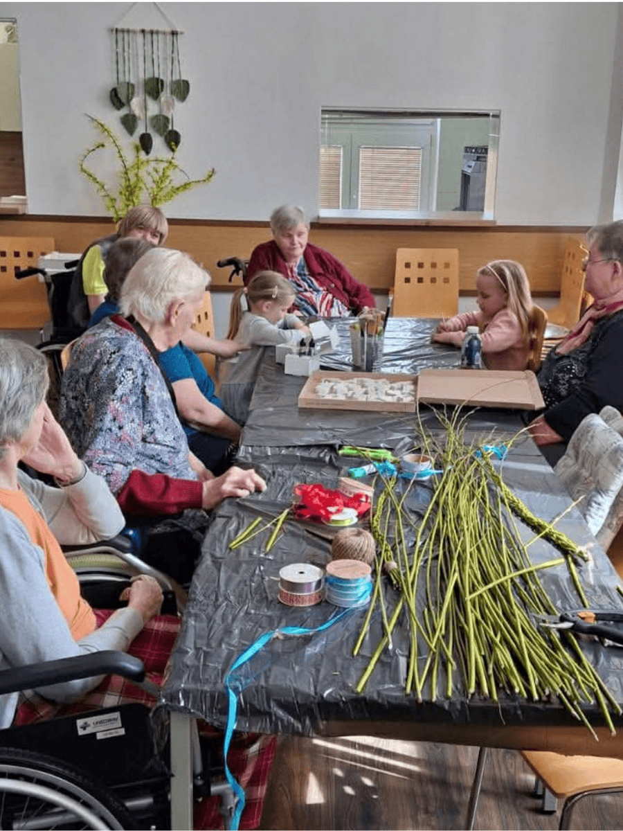 Začátkem měsíce jsme se společně naladili na velikonoční atmosféru při tvořivém odpoledni. Praktikantka Monika dorazila i se svými dětmi a připravila pro naše klienty sádrové zajíčky k vybarvení akrylovými barvami. Nechybělo ani pletení pomlázek, které přineslo nejen radost z tvoření, ale i spoustu úsměvných momentů. Děti vykouzlily klientům úsměvy na tvářích – tato mezigenerační setkání jsou pro nás opravdu velmi cenná.