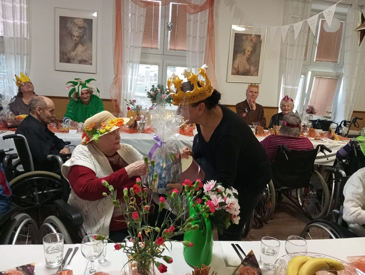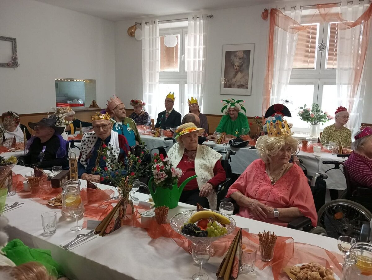 Minulý čtvrtek, 12. února, se jídelna našeho Charitního domu pro seniory v Hnojníku proměnila v krásný zámecký sál. Konal se u nás totiž „Královský ples“ plný králů, královen, elegantních služebných a mušketýrů. A nechyběl ani dvorní šašek.