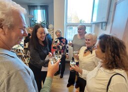 Vernisáže se zúčastnila také ředitelka Charity Český Těšín, vyjádřila panu Drongovi své poděkování, vedoucí Charitního centra pro seniory mu se slovy díků předala malou pozornost a společný přípitek Vineou tuto zajímavou vernisáž otevřel.