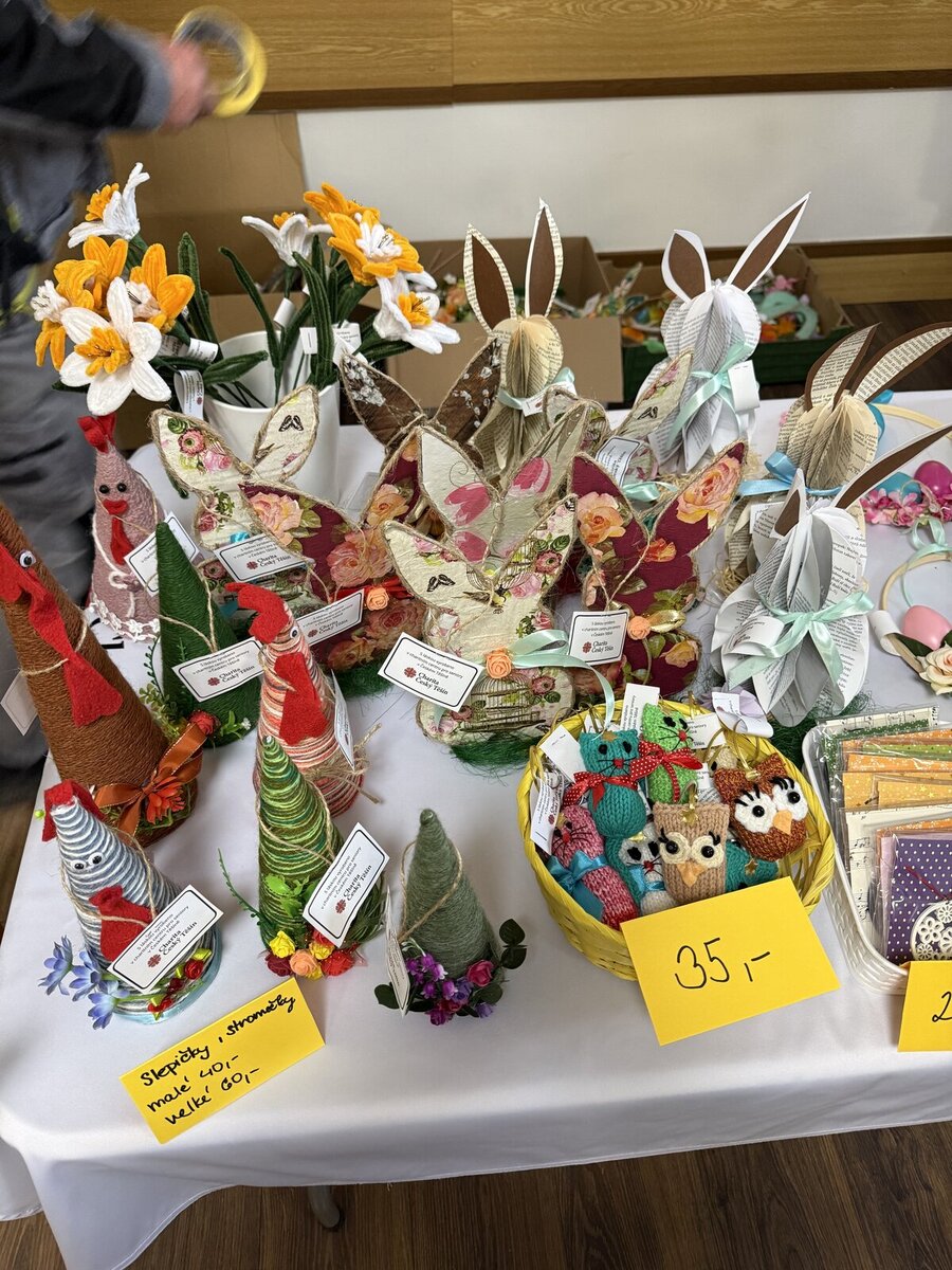 Návštěvníci si mohli prohlédnout a zakoupit širokou škálu výrobků – od domácích sušenek přes krásné velikonoční dekorace až po praktické drobnosti, jako jsou například pletené ponožky. Každý si tak přišel na své a zboží rychle mizelo ze stolů.