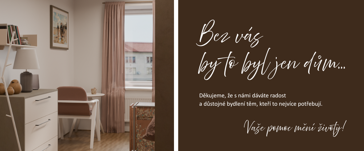 Naši senioři si zaslouží důstojné a útulné prostředí. A my chceme dům pro seniory změnit na jejich domov. Protože domovem nejsou pouhé čtyři stěny. Domov je místo, kde se cítíme dobře a v bezpečí, kam se rádi vracíme a zcela jistě je to místo, ke kterému se vážou hezké vzpomínky. Pomozte nám takové místo pro naše seniory vytvořit.