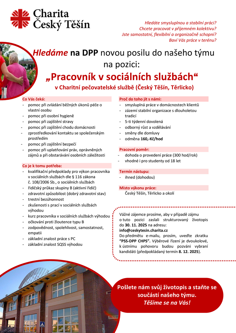 Pracovník v sociálních službách - DPP, Charitní pečovatelská služba